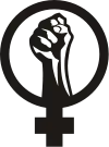یک پرچم بنفش و سیاه اغلب نمایانگر فمینیسم اقتدارگریز می باشد