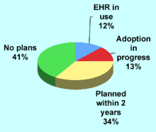 با اینکه گزارش سلامت الکترونیکی (EHR)، که قبلاً به نام گزارش پزشکی الکترونیکی (EMR) شناخته میشد و بهطور مکرر در مقالات مورد استناد است، هیچ تعریف جامعی برای آن وجود ندارد.[11]به هر حال، این اتفاق نظر وجود دارد که EMRها میتوانند انواع خطاهای مربوط به داروهای تجویزی، مراقبتهای پیشگیرانه و آزمایشها و دستورالعملها را کاهش دهند.[12]هشدارهای تکرار، بازههای زمانی مراقبت پیشگیرانه، مسیرهای مراجعهها و نتایج آزمایشها را به متخصصان بالینی یادآوری میکند. دستورالعملهای بالینی برای مدیریت بیماری دارای منفعت اثبات شدهای است در صورتی که در ثبت الکترونیکی در طول فرایند درمان بیمار در دسترس باشد. پیشرفت در انفورماتیک سلامت و استفاده گسترده از پروندههای الکترونیکی سلامت، امکان دسترسی به پروندههای یک بیمار در هر مرکز درمانی را فراهم میآورد. در گزارشی در سال ۲۰۰۵ اشاره شده که روشهای درمانی در ایالات متحده با موانعی مانند آموزش، هزینهها و پیچیدگی در پذیرش و سازگاری با سیستمهای EHR مواجه است، اما میزان کاربرد آن در حال افزایش است .(جدول سمت راست را مشاهده کنید)[13]