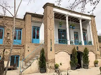 دو طبقه دارد که طبقهٔ همکف در تابستان و روزهای گرم مورد استفاده بوده و آشپزخانه و انبارها نیز در همین طبقه هستند. طبقهٔ اول متشکل از یک رواق ستوندار، چهار اتاق و یک اتاق پشتی است.[54] اتاقهای انباری قسمت شرقی این خانه به مغازه تبدیل و اجاره داده شدهاست.[55] |