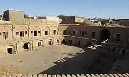 به شکل مستطیل است و ۶۴۱ مترمربع مساحت دارد. یک ایوان دارد و حیاط مرکزی ندارد. با توجه به کویری بودن منطقه مسقف است. شباهت زیادی به چاپارخانه یا اصطبل و خرگاه زمستانی دارد.[28] |