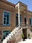 از لحاظ طراحی و چیدمان فضا متأثر از معماری غربی است. نبود ایوان، تنظیم دمای خانه را دچار ضعف کردهاست. وجود راهرو پشتی، دسترسیپذیری اتاقهای رو به حیات را بهبود داده و پنجرههای رو به خیابان نورگیری اتاقهای پشتی را افزایش داده ولی از درونگرایی معماری بومی کاستهاست.[49] دو سال ساختمان یک مدرسهٔ خصوصی بود و حالا «خانهٔ هنرمندان سبزوار» است.[50] |