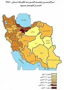 جمعیت استانهای ایران بر پایهٔ سرشماری سالهای ۱۳۸۵،[4] ۱۳۹۰ [5] و [6]۱۳۹۵(بهترتیب جمعیت سال ١٣۹۵):