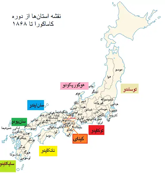 نقشه استانها از دوره کاماکورا تا ۱۸۶۸