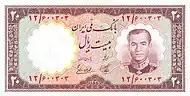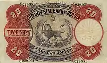 ۲۰ تومان | ۱۱۲×۱۹۶ | نگاره ناصرالدین شاه | نماد شیر و خورشید