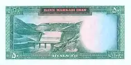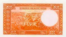 - نام بانک به فرانسوی و ارزش اسکناس با حروف لاتین در پشت اسکناس