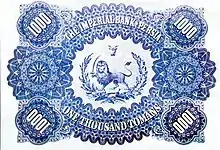 ۱۰۰۰ تومان | ۱۴۲×۲۳۶ | نگاره ناصرالدین شاه | نماد شیر و خورشید