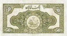 ۵۰ تومان | نامشخص | نگاره ناصرالدین شاه | نماد شیر و خورشید