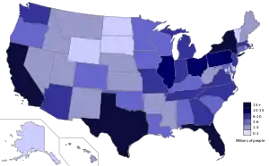 فهرست ایالات آمریکا بر پایه جمعیت که در ۱ آوریل ۲۰۱۰ سرشماری شده است. ۲۵ ایالت از ایالات آمریکا کمتر از یک ششم جمعیت را تشکیل میدهند، و کالیفرنیا پر جمعیتترین ایالت آمریکا مساوی ۲۱ ایالت کم جمعیت آمریکا میباشد.