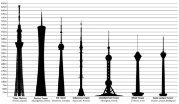 | ۸ | برج رادیو و تلویزیونی تیانجین | تیانجین | ۴۱۵٫۲ متر | ![]() | |