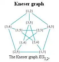 گراف پترسن، گراف مکمل گراف خط است. همچنین گراف کنزر است به این معنا که اگر برای هر کدام از زیرمجموعههای دو عضوی یک مجموعهٔ ۵ عضوی یک رأس در نظر بگیریم و بین هر دو رأسی که زیرمجموعهها ی نظیرشان ناسازگار باشند یک یال وصل کنیم، گراف پترسن ساخته میشود.