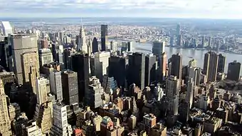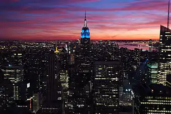نیویورک نقش برجستهای در توسعه آسمانخراشها داشتهاست. از سال ۱۸۹۰، یازده ساختمان دارنده عنوان بلندترین ساختمان جهان بودهاند.[12]