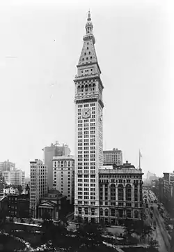 تاریخچه ساخت آسمانخراشها در نیویورک با ساخت ورلد بیلدینگ (به انگلیسی: World Building) در سال ۱۸۹۰ آغاز شد. ساختمانی که ارتفاع آن بالغ بر ۱۰۶ متر بود.[10] اگرچه ورلد بیلدینگ اولین ساختمان مرتفع شهر نبود، ولی ارتفاع آن از ارتفاع ۸۷ متری کلیسای ترینیتی در والاستریت بلندتربود.[11] تا سال ۱۸۹۹ ورلدبیلدینگ بلندترین ساختمان شهر بود و در نهایت در سال ۱۹۵۵ به جهت عریض کردن دهانه پل بروکلین تخریب شد.[11]
