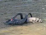 | قوی سیاه | Cygnus atratus | ![]() | نزدیک به یک چهارم همه قوهای سیاه رفتار همجنسگرایانه دارند. آنها برای به دست آوردن تخم یا به تشکیل پیوندی موقت با یک ماده اقدام میکنند و پس از تخمگذاری آن را از میان خود بیرون میاندازند یا آنکه با حمله به آشیانه قوهایی که تخم گذاشتهاند، آشیانه را به همراه تخمها از دستشان بیرون میآورند.[32] |