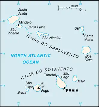 جزایر گروه سانتو آنتیاو، دماغه سبز، سائو ویسنته، دماغه سبز، سانتا لوزیا، دماغه سبز، سائو نیکولاو، دماغه سبز، سال، دماغه سبز، و بوا ویستا، دماغه سبز میباشند.