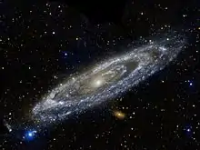 کهکشان آندرومدا. این کهکشان توسط عبدالرحمن صوفی کشف شد و نخستین رویت اجسام خارج از کهکشان راه شیری توسط بشر بود.