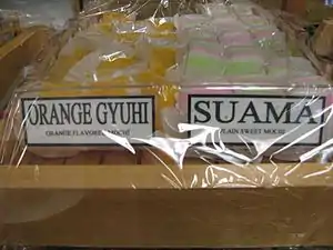 - مشارکتکنندگان ویکیپدیا. «List of Japanese desserts and sweets». در دانشنامهٔ ویکیپدیای انگلیسی، بازبینیشده در ۱۱ نوامبر ۲۰۱۸.