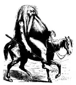 او به شکل مرد پیر و رنگ پریدهای سوار بر یک کروکودیل تجسم میشود که یک باز در دست دارد.[6][7]