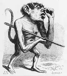 او به شکل یک بابون یا بر اساس برخی از منابع، در هیبت یک بیگانه تصویر میشود.