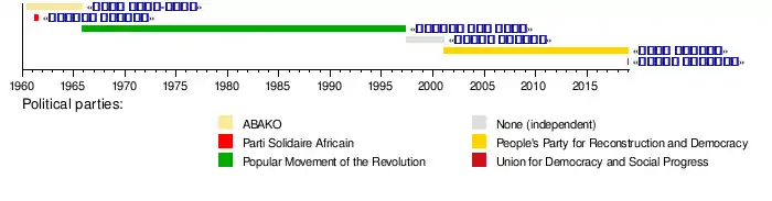 ۱۹۳۰–۱۹۹۷ | ۱۹۷۰ | ۲۴ نوامبر ۱۹۶۵ | ۲۷ اکتبر ۱۹۷۱ | Military / Popular Movement of the Revolution | |