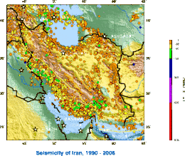 پراکندگی زمینلرزههای ایران از سال ۱۹۹۰−۲۰۰۶، اداره زمینشناسی ایالات متحده