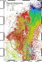 فهرست زمینلرزههای تایوان (انگلیسی: List of earthquakes in Taiwan) این لیست زمین لرزهها در تایوان دارای زلزلههای مهمی است که بر جزیره تایوان تأثیر گذاشتهاست. تایوان در منطقه زلزلهخیز فعال، در حلقه آتش اقیانوس آرام، در لبه غربی صفحه دریای فیلیپین قرار دارد.[1] زمین شناسان ۴۲ گسل فعال در این جزیره را شناسایی کردهاند، اما بیشتر زمین لرزهها در تایوان به دلیل همگرایی صفحه دریای فیلیپین و صفحه اوراسیا در شرق جزیره شناسایی شدهاند.[2]