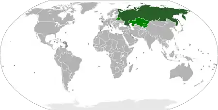 در اینجا فهرست سرزمینهایی که زبان رسمیشان روسی است ارائه شدهاست. روسی زبان مادری حدود ۱۴۵ میلیون نفر است و ۱۱۰ میلیون نفر آن را به عنوان زبان دوم میدانند. روسی زبان رسمی فدراسیون روسیه و یکی از زبانهای رسمی کشورهای بلاروس، قزاقستان، قرقیزستان و جمهوری خودمختار کریمه و نیز یکی از شش زبان رسمی سازمان ملل متحد است. همچنین این زبان به صورت گسترده در کشورهای اوکراین، گرجستان، ارمنستان، جمهوری آذربایجان، تاجیکستان، ازبکستان، ترکمنستان و اسرائیل تکلم میشود.