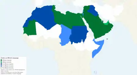 کشورهایی که زبان ملی یا کاری به رسمیتشناختهشدهشان عربی است عبارتند از: