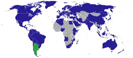 - مشارکتکنندگان ویکیپدیا. «List of diplomatic missions of Argentina». در دانشنامهٔ ویکیپدیای انگلیسی، بازبینیشده در ۲۴ اکتبر ۲۰۱۶.