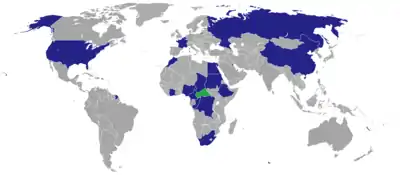 نقشه کشورهای دربردارنده سفارتخانه آفریقای مرکزی