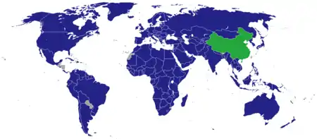 - مشارکتکنندگان ویکیپدیا. «List of diplomatic missions of China». در دانشنامهٔ ویکیپدیای انگلیسی، بازبینیشده در ۲۰ نوامبر ۲۰۱۶.