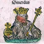 پسر کوروش بزرگ | بردیا، پسر کوچکتر کوروش بزرگ هخامنشی و برادر کمبوجیهٔ دوم بود. گئومات یا بردیای دروغین غاصب پادشاهی، نام مغی بود که به نوشتهٔ کتیبه بیستون وانمود کرد که پسر کوروش بزرگ، بردیا است و تخت پادشاهی را از آن خود کرد. پس از مرگ کمبوجیهٔ دوم، گئومات با فریبکاری و زورستانی با معرفی خود با نام بردیا، فرزند کوروش بزرگ، تخت پادشاهی را مالک شد. بعد از آن داریوش بزرگ با یاری جمعی از نجیبزادگان پارسی، گئومات را کشت و به پادشاهی رسید. | - | [12] | ||||