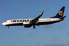 یک فروند Boeing 737-800 متعلق به رایانایر که بزرگترین شرکت هواپیمایی ارزانقیمت در اروپا، و دومین شرکت هواپیمایی ارزانقیمت بزرگ در جهان است.