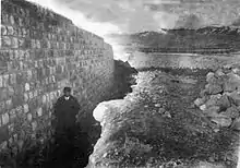 حسینقلی خان جلیلی (ارفع الملک)، شهردار تبریز در کنار دیوار سد در جلو دروازه تهران، ۱۳۱۳/۹/۱۵