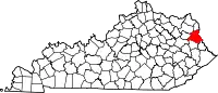 | شهرستان جانسون، کنتاکی | پینتسویل، کنتاکی | ۱۸۴۳ | ۲۳٬۳۵۶ | ۲۶۲ مایلمربع (۶۸۰ کیلومترمربع) | |