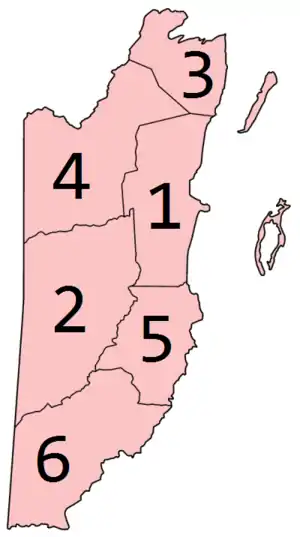 بلیز به شش منطقه تقسیم میگردد که به شرح زیر است: