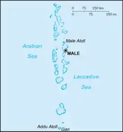 - مشارکتکنندگان ویکیپدیا. «List of cities, towns and villages in the Maldives». در دانشنامهٔ ویکیپدیای انگلیسی، بازبینیشده در ۴ مارس ۲۰۱۸.
