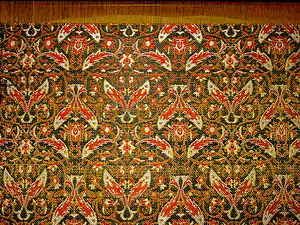 نمونهای از پارچه زربفت ابریشمی با طرح گل شاه عباسی