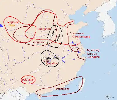 | ۳۱۰۰–۲۷۰۰ | فرهنگ کوجیالینگ | 屈家嶺文化 | میانهٔ منطقهٔ رود یانگتسه در هوبئی و هونان |
