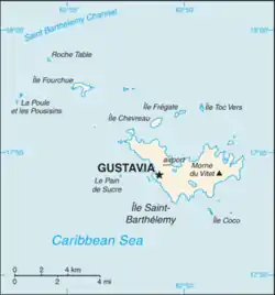 نقشهٔ سنت بارثلمی بههمراه موقعیت فرودگاهها.