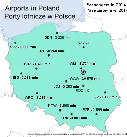 - "Number of passengers served and operations performed in regular and charter traffic at Polish airports 2009 – 2011 / Liczba obsłużonych pasażerów oraz wykonanych operacji w ruchu regularnym i czarterowym w polskich portach lotniczych w latach 2009 – 2011" (PDF) (به لهستانی). Civil Aviation Office. Retrieved 21 March 2012. More than one of
