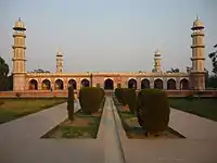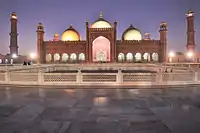 ۱۹۹۳ | The mosque was commissioned by فهرست پادشاهان گورکانی هند اورنگزیب in 1671. It is the second largest mosque in Pakistan after مسجد شاه فیصل and can accommodate over 100,000 worshipers in its hall and surroundings. The mosque is located opposite to قلعه شاهی and symbolizes the rich معماری گورکانی. It was the largest mosque in the Mughal empire and held the record of being the largest mosque in the world for 313 years until 1986. Under Sikh and British rule from 1799 to 1939, the mosque was used as military garrison and was severely damaged. Extensive repair work were done after 1939 and by 1960 it was restored to its original conditions. A small museum containing relics of Prophet Muhammad, his cousin Ali, and his daughter Fatimah is established inside the mosque. | [11][12] |