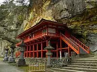 این معبد در دریای داخلی ستو واقع شده و از اولین مکان مقدس شینتوشیسم بودهاست. نخستین بناهای آرامگاهی در اینجا احتمالاً در قرن ششم ساخته شده و قدمت این نیایشگاه به سده ۱۲ میلادی بازمیگردد. معبد در تضاد با رنگ و فرم بین کوه و دریا نمایان است و مفهوم ژاپنی از زیبایی منظره را نشان میدهد، که ترکیبی از طبیعت و خلاقیت انسان است. | [11] |