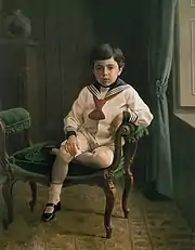 کودک در لباس ملوانی | رنگ روغن روی کرباس | ۱۴۲ در ۱۰۰ سانتیمتر (۵۶ در ۳۹ اینچ) | مؤسسهٔ فرهنگی موزههای بنیاد مستضعفان انقلاب اسلامی | [79][80][1] | |