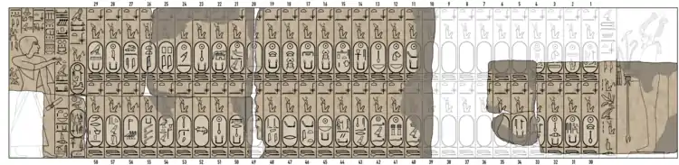نگارهای کشیده شده توسط ماریت از فهرست پادشاهان سقاره در سال ۱۸۶۴ میلادی