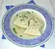 راویولی Ravioli | Square. About 3x3 cm, stuffed with cheese, ground meat, pureed vegetables, or mixtures thereof | Possibly from rapa, "turnip" |