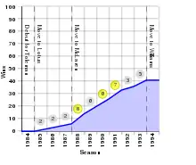 - شماره – شمارهٔ پیروزی؛ بهعنوان مثال، «۱» نشانگر نخستین پیروزی سنا در مسابقه است.