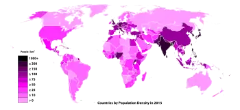 تراکم جمعیت (نفر در هر km۲) بر پایه کشورها، ۲۰۱۵