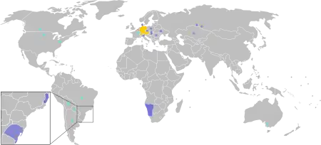 | آفریقا | زبان اقلیت، معمولاً استفاده همزمان با زبان دختر آفریکانس | |