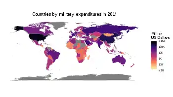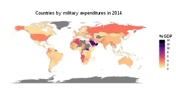 کشورها بر اساس هزینه نظامی باتوجه به GDP (درصد تولید ناخالص داخلی) در سال ۲۰۱۴، بر اساس دادههای بانک جهانی