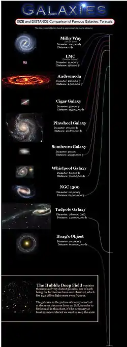 | Intrinsically faintest galaxy | Boötes Dwarf Galaxy (Boo dSph) | قدر مطلق (ستارهشناسی) -۶٫۷۵ | This does not include dark galaxies. |